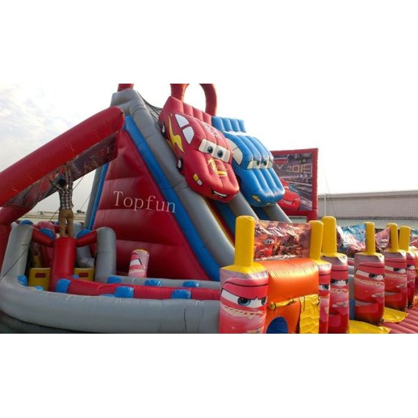 Exciting Car Race Inflatable Slide , Customised Inflatable PVC Tarpaulin Slide