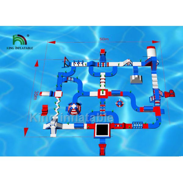 50 x 35m Red Amusement Inflatable Water Parks With 2 Years Warranty Images |