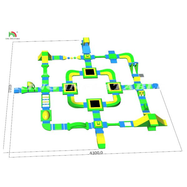 This water obstacle made of 0.9mm PVC tarpaulin material is heat sealed using high temperature technology. water park also call inflatable water obstacle ,water amusement park ,water sport game ,summer sport game ,inflatable sea game.This set of water obstacles includes wiggle bridge, balance