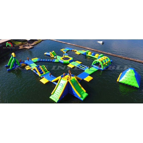 This water obstacle made of 0.9mm PVC tarpaulin material is heat sealed using high temperature technology. water park also call inflatable water obstacle ,water amusement park ,water sport game ,summer sport game ,inflatable sea game.This set of water obstacles includes wiggle bridge, balance